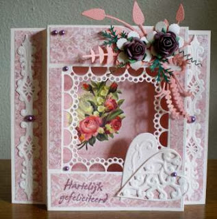 Het moest een rose kaartje worden volgens een schets maken,dit is mijn bijdrage